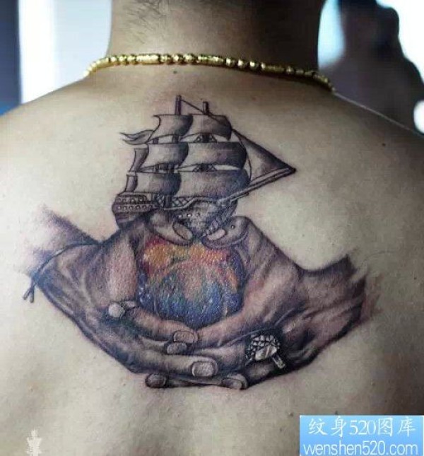 背部和平之手帆船纹身图案_后背纹身图案大全_纹身图吧