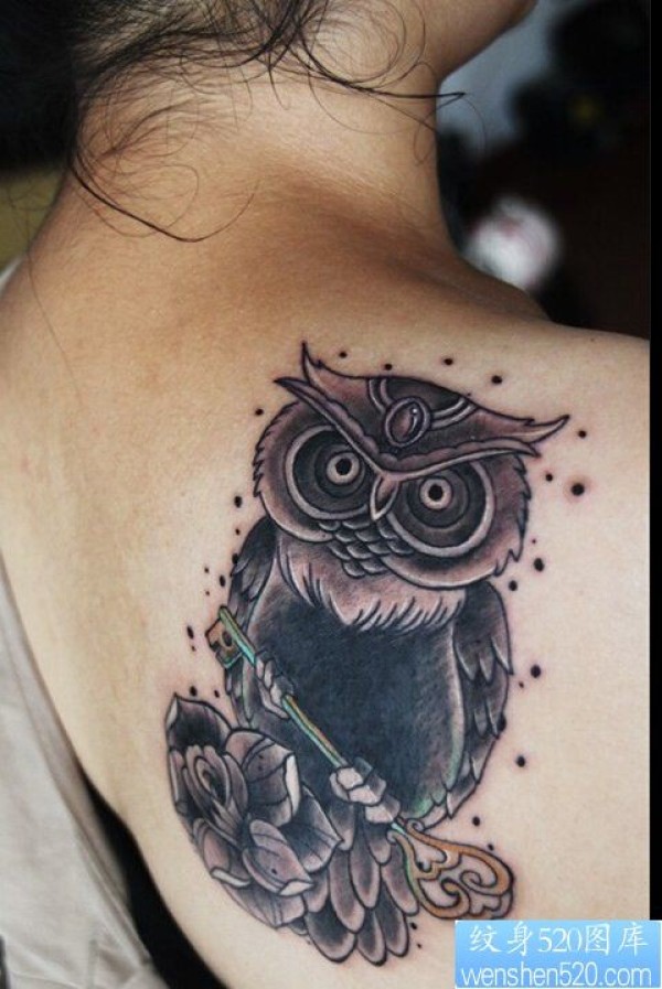 背部猫头鹰钥匙纹身图案_后背纹身图案大全_纹身图吧