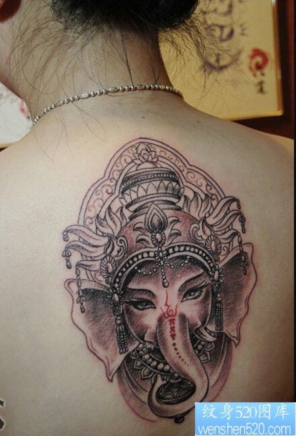 背中黑白象神纹身图案_后背纹身图案大全_纹身图吧