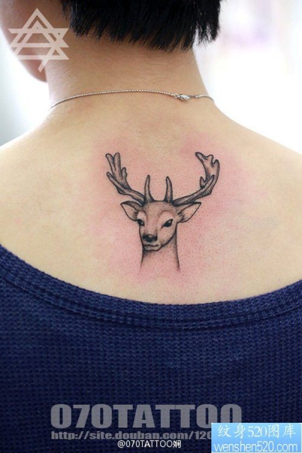 一幅背部潮流小鹿纹身图片_后背纹身图案大全_纹身图吧