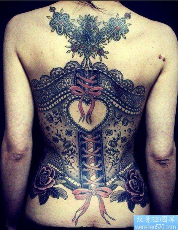 一幅个性的满背蕾丝衣纹身图片_后背纹身图案大全_纹身图吧