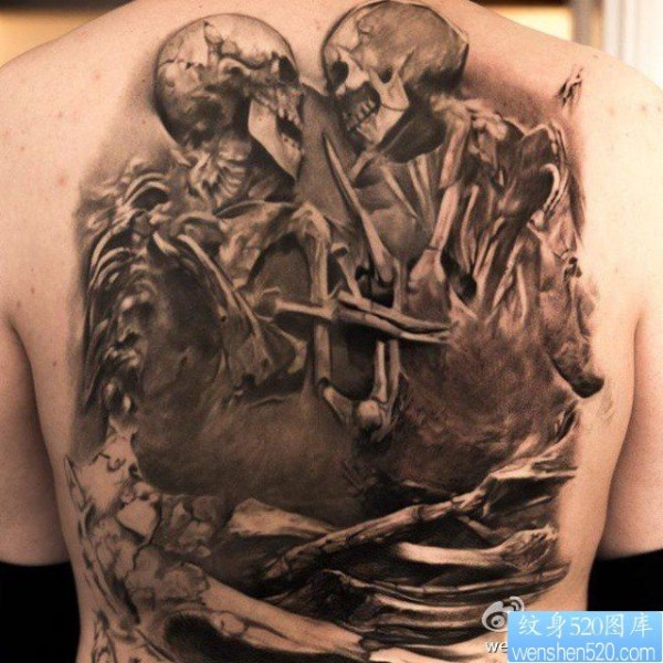 一幅满背骷髅头纹身图片_后背纹身图案大全_纹身图吧