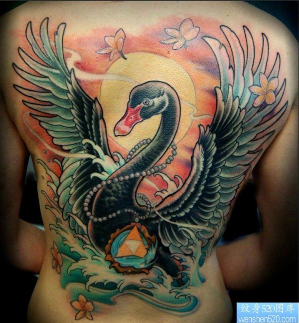 时尚漂亮的满背天鹅纹身图片_后背纹身图案大全_纹身图吧