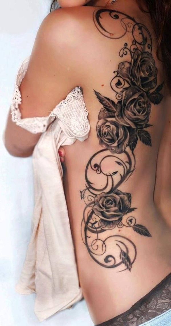 美女背部藤蔓纹身_后背纹身图案大全_纹身图吧