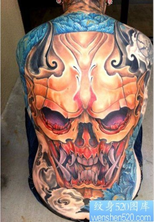 一幅欧美满背骷髅纹身图片欣赏_后背纹身图案大全_纹身图吧