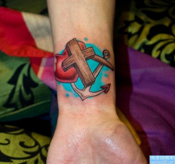 手腕上一幅漂亮船锚纹身图片_后背纹身图案大全_纹身图吧