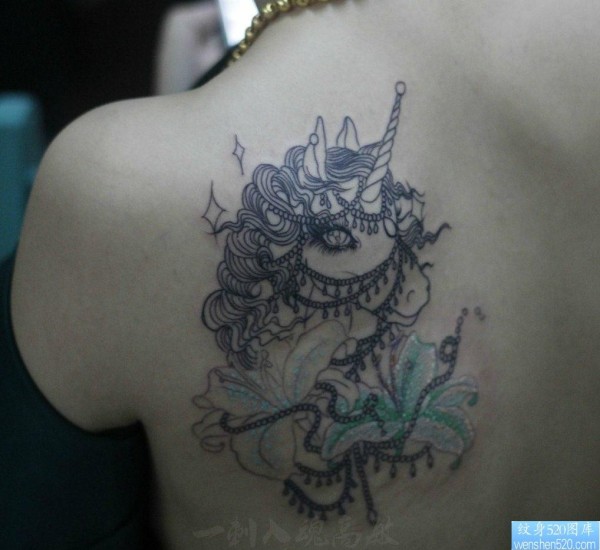 一幅背部独角兽文身图片_后背纹身图案大全_纹身图吧