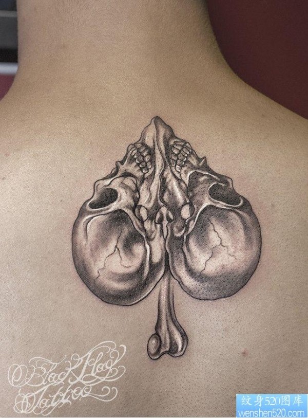 一幅颈部爱心骷髅纹身图片_后背纹身图案大全_纹身图吧