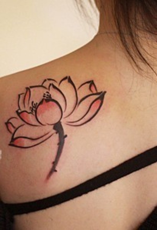 女性背上漂亮的荷花纹身图片_后背纹身图案大全_纹身图吧
