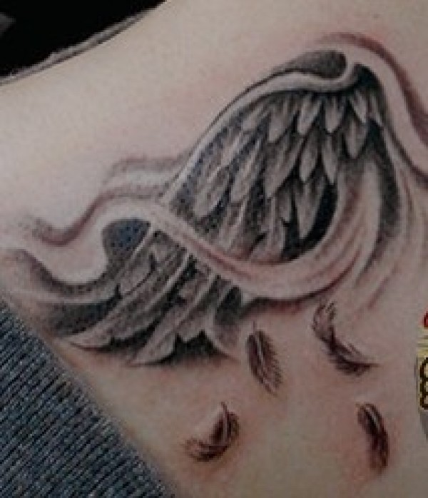 女士背部折翼翅膀的纹身图案_后背纹身图案大全_纹身图吧