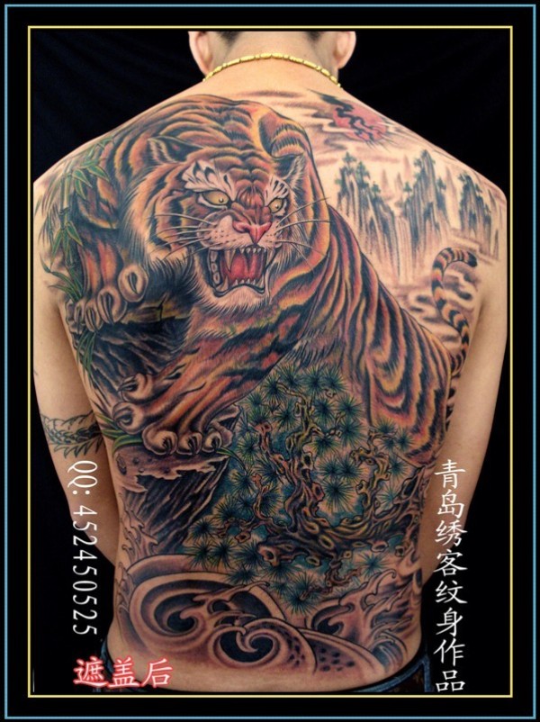 国画形式的猛虎上山图案_后背纹身图案大全_纹身图吧