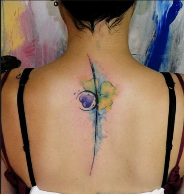水彩植物纹身图案大全美女后背四叶草图案水彩_后背纹身图案大全_纹身图吧