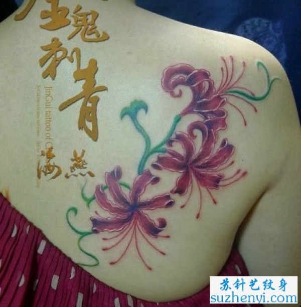 背部彼岸花纹身分享_后背纹身图案大全_纹身图吧
