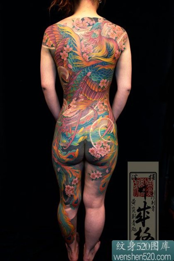 女孩子满背彩色凤凰纹身图案_凤凰纹身图案大全_纹身图吧