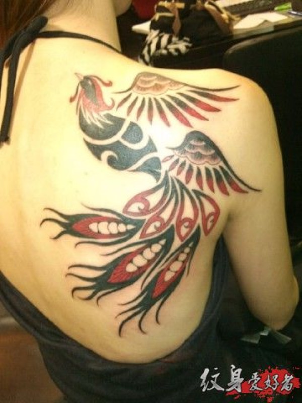 女孩子背部精美的凤凰纹身图案_凤凰纹身图案大全_纹身图吧