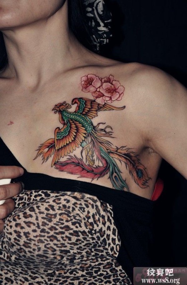 女生胸前火凤凰纹身图案图案_凤凰纹身图案大全_纹身图吧