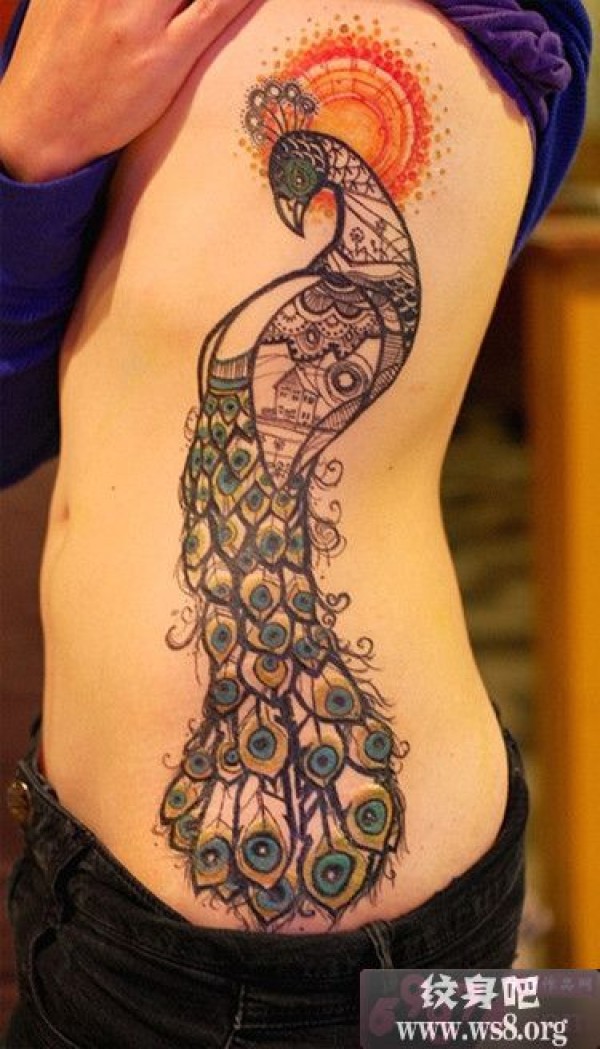 腰部彩色凤凰时尚纹身图案_凤凰纹身图案大全_纹身图吧