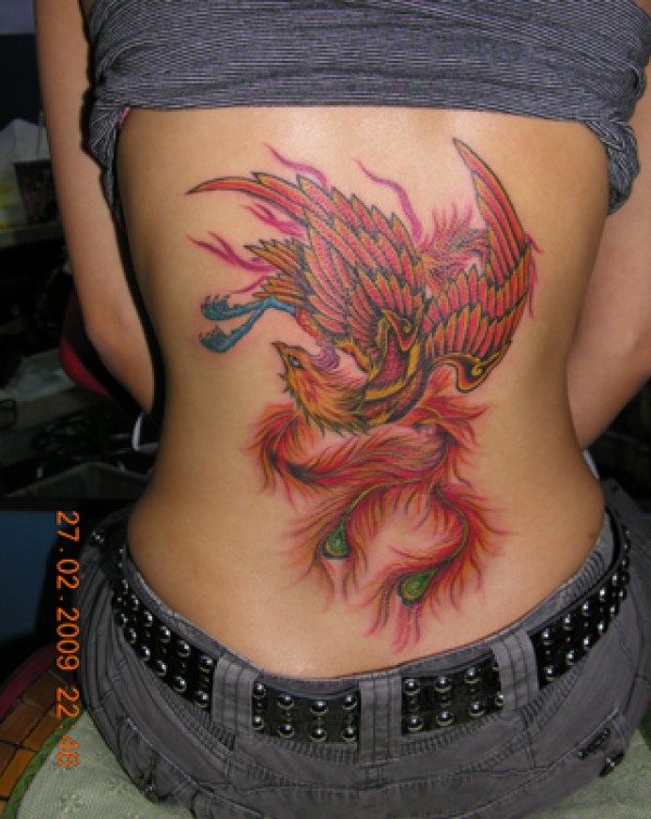 女孩子满背彩色凤凰纹身图案_凤凰纹身图案大全_纹身图吧