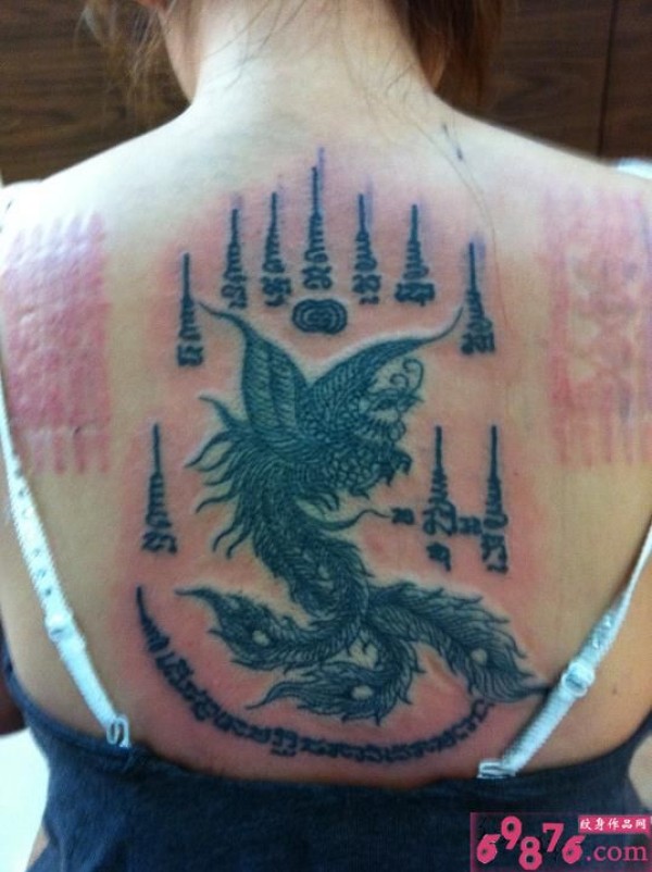 后背泰文和凤凰图腾刺青_凤凰纹身图案大全_纹身图吧
