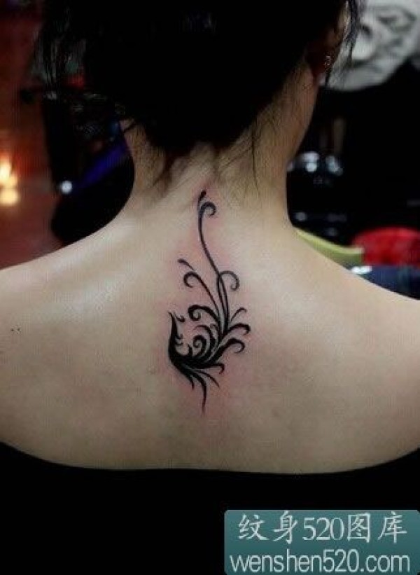 女孩子颈部小巧的图腾凤凰纹身图案_凤凰纹身图案大全_纹身图吧