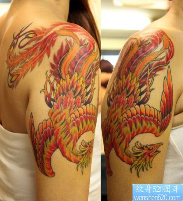 女孩大臂彩色凤凰纹身_凤凰纹身图案大全_纹身图吧