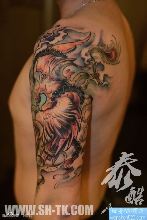 男生胳膊凤凰佛珠(三)纹身图片_凤凰纹身图案大全_纹身图吧