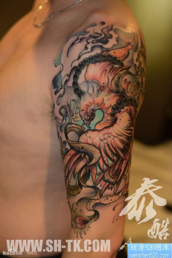 男生胳膊凤凰佛珠(二)纹身图片_凤凰纹身图案大全_纹身图吧