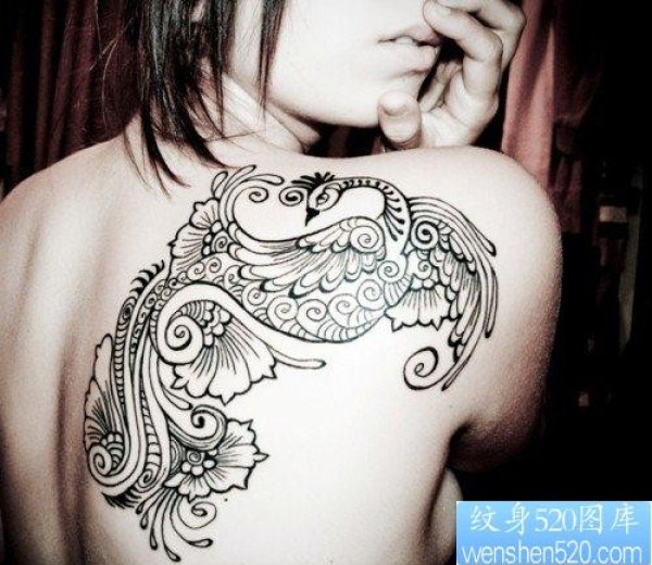 女孩子背部精美的凤凰纹身图案_凤凰纹身图案大全_纹身图吧