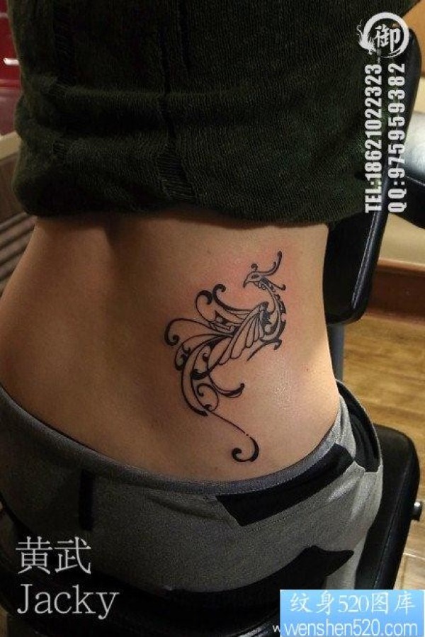 美女腰部漂亮潮流的图腾凤凰纹身图片_凤凰纹身图案大全_纹身图吧