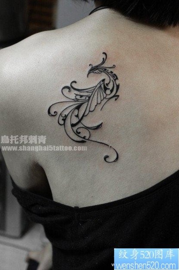 美女肩背好看的图腾凤凰纹身图片_凤凰纹身图案大全_纹身图吧