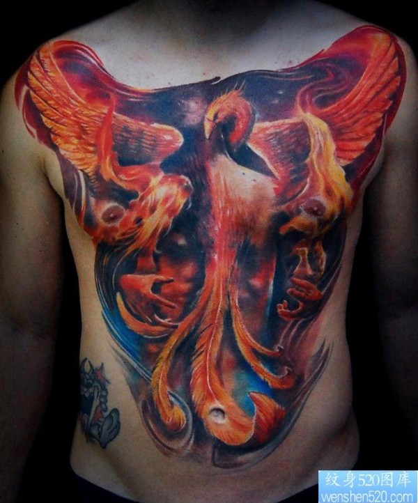 女孩子满背彩色凤凰纹身图案_凤凰纹身图案大全_纹身图吧