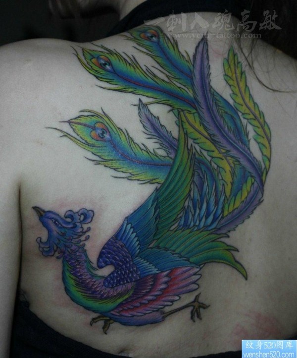女孩子满背彩色凤凰纹身图案_凤凰纹身图案大全_纹身图吧