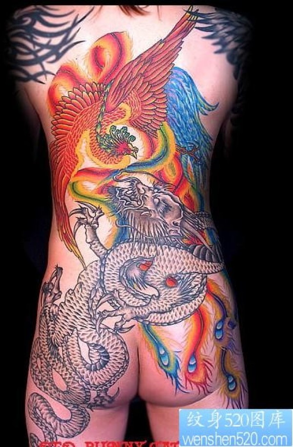 纹身作品满背龙与凤凰纹身图片作品_凤凰纹身图案大全_纹身图吧