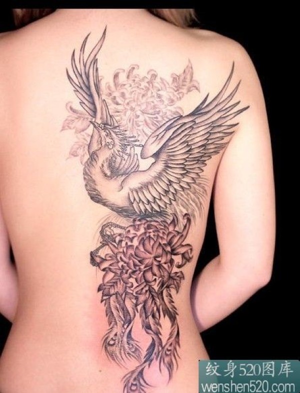 一款好看的美女满背凤凰纹身图案_凤凰纹身图案大全_纹身图吧