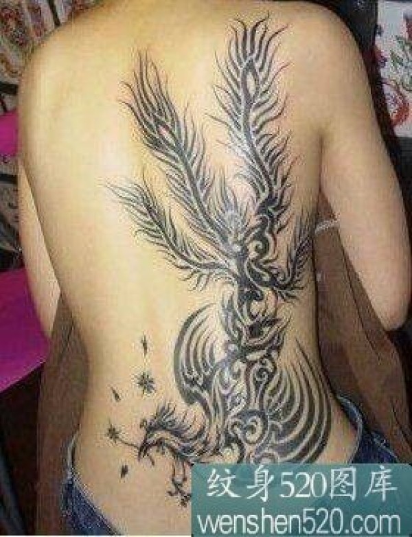 一款好看的美女满背凤凰纹身图案_凤凰纹身图案大全_纹身图吧