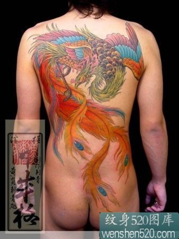 女孩子满背彩色凤凰纹身图案_凤凰纹身图案大全_纹身图吧