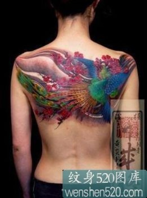 女孩子满背彩色凤凰纹身图案_凤凰纹身图案大全_纹身图吧