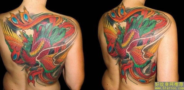 女孩子满背彩色凤凰纹身图案_凤凰纹身图案大全_纹身图吧