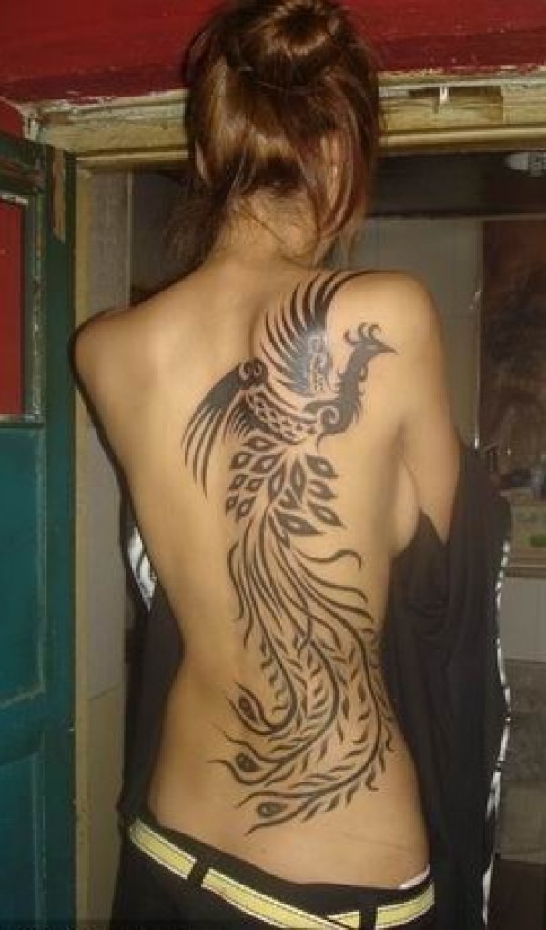 一款好看的美女满背凤凰纹身图案_凤凰纹身图案大全_纹身图吧