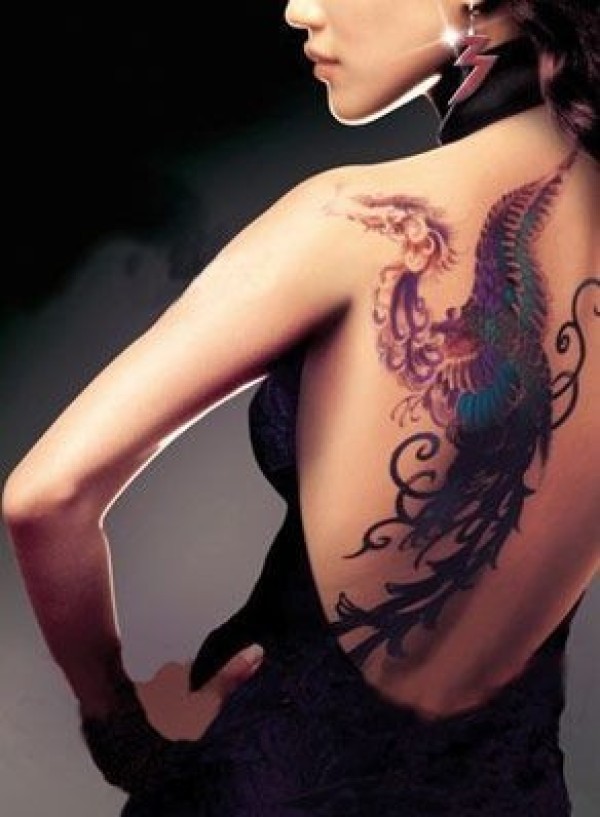 女孩子满背彩色凤凰纹身图案_凤凰纹身图案大全_纹身图吧