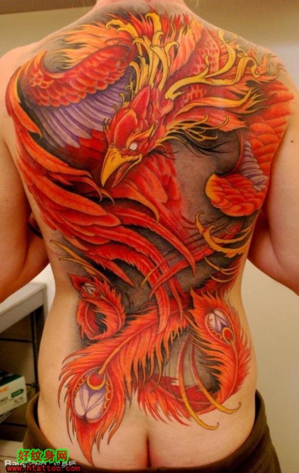 女孩子满背彩色凤凰纹身图案_凤凰纹身图案大全_纹身图吧