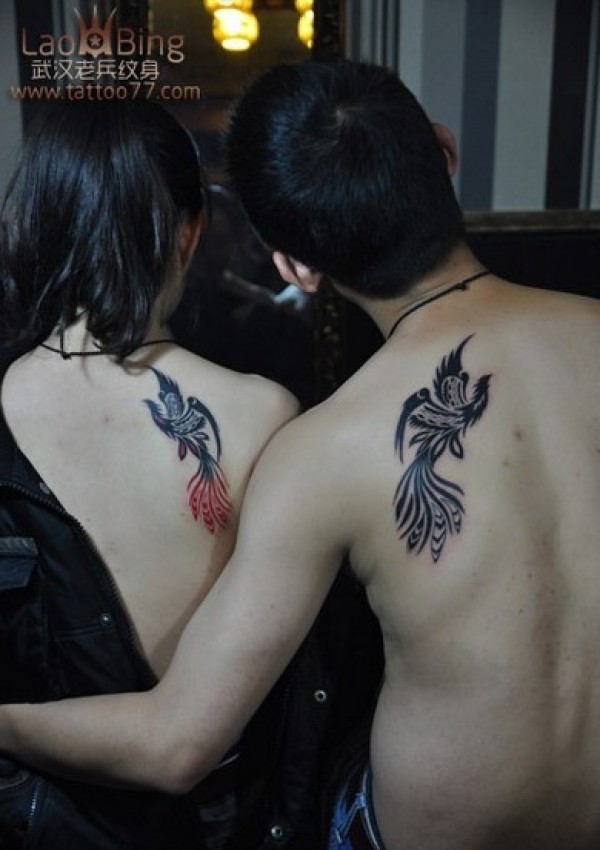 老兵纹身作品情侣背后凤凰图腾_凤凰纹身图案大全_纹身图吧