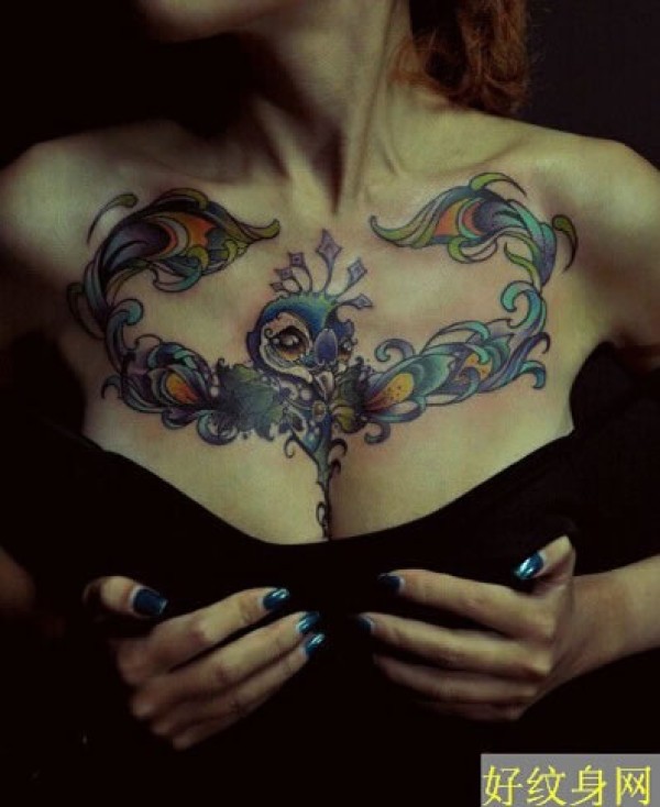 美女胸部上各种姿态的凤凰纹身扑腾欲飞的凤凰_凤凰纹身图案大全_纹身图吧