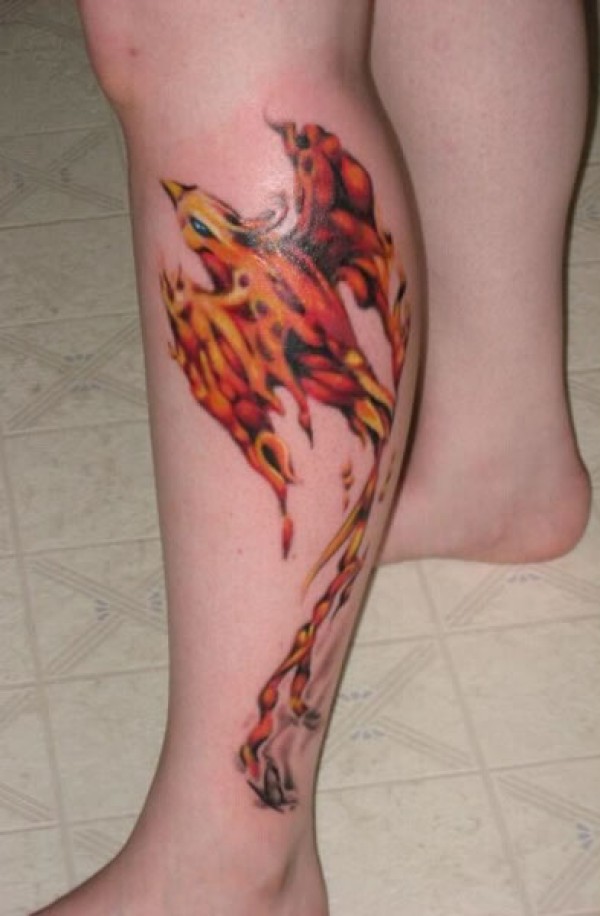 小腿处腾飞的鸾凤纹身图烈火鸾凤纹身图案_凤凰纹身图案大全_纹身图吧