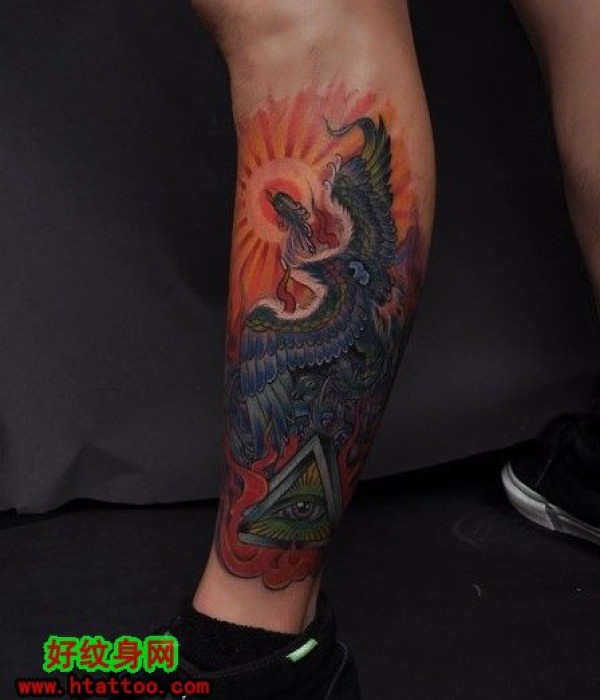 腿部精美好看的图腾凤凰纹身图案_凤凰纹身图案大全_纹身图吧