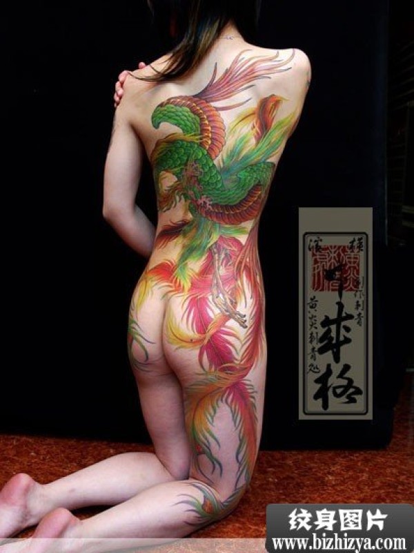 全裸美女后摆凤凰纹身展示_凤凰纹身图案大全_纹身图吧