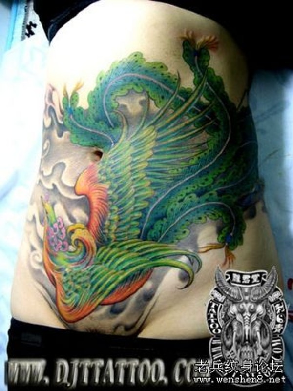 一款美女腹部彩色凤凰纹身图案_凤凰纹身图案大全_纹身图吧