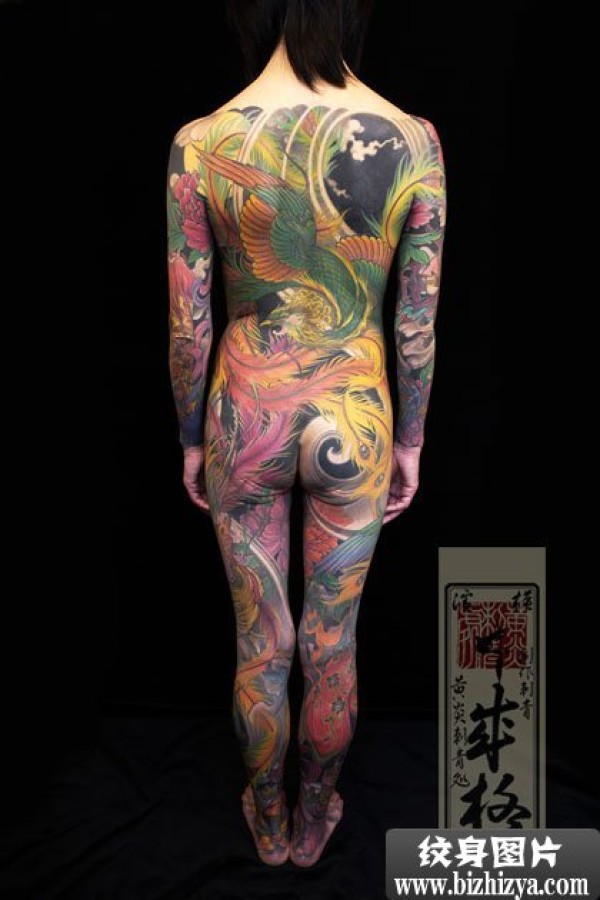 女孩子满背彩色凤凰纹身图案_凤凰纹身图案大全_纹身图吧
