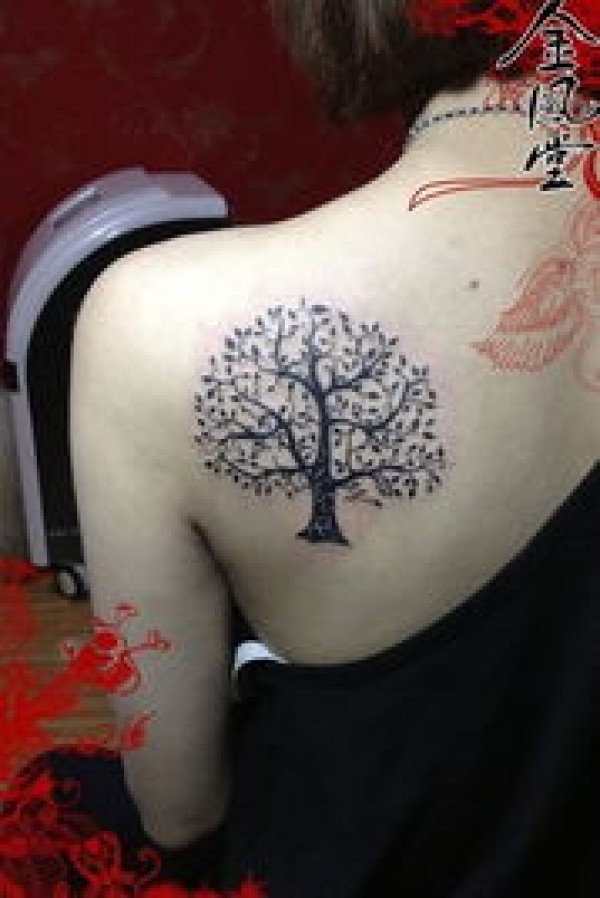 金凤堂作品左后肩树木纹身图案欣赏_凤凰纹身图案大全_纹身图吧