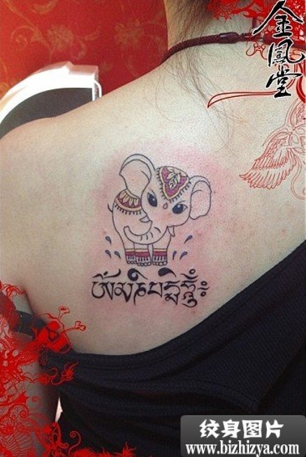 金凤堂作品女子左后肩小象神刺青图案_凤凰纹身图案大全_纹身图吧